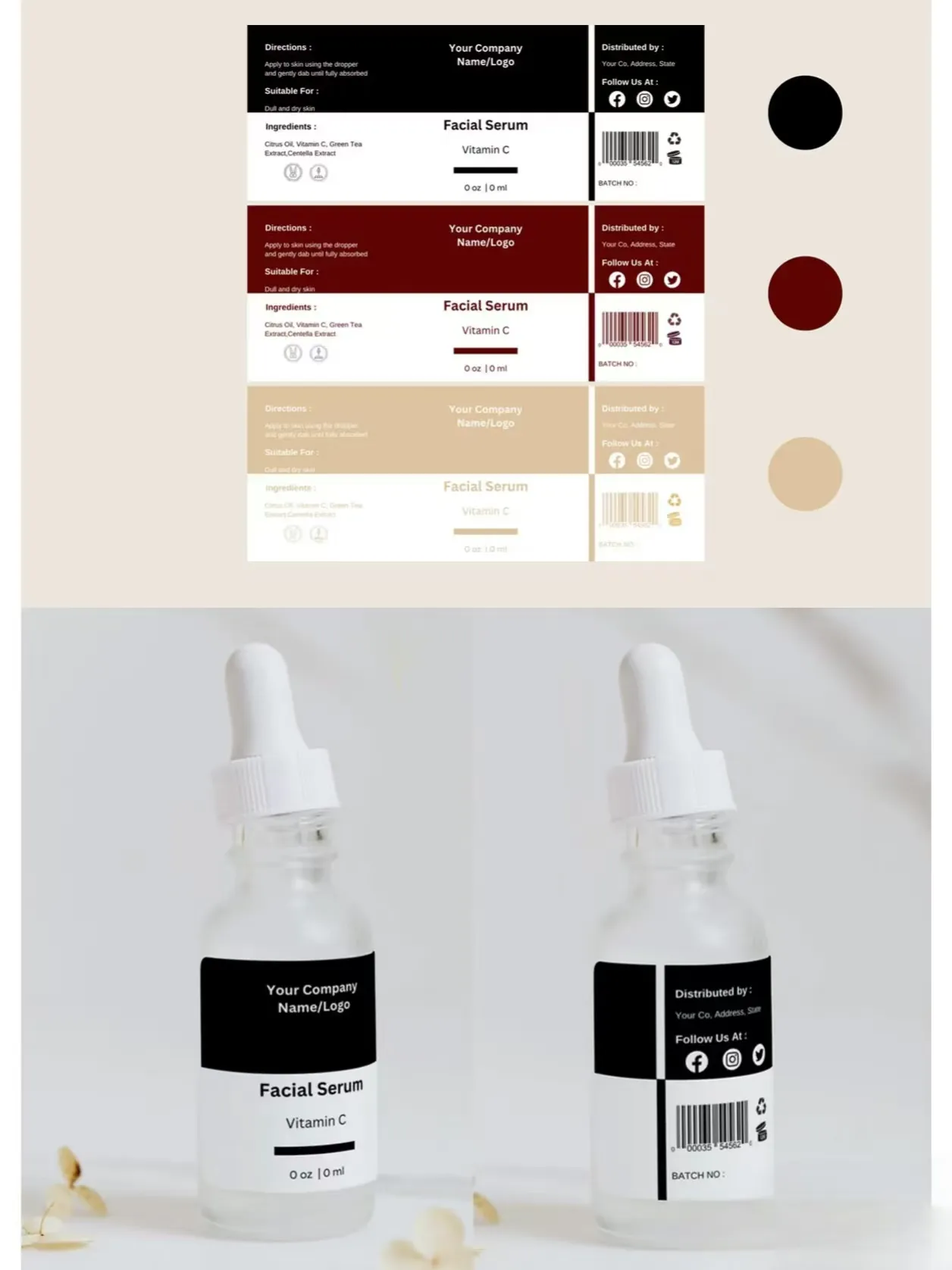 ฉลากขวดขนาด 20 มล. ผลิตจากวัสดุระดับพรีเมียมหลากหลายประเภท รวมถึงไวนิลมันกันน้ำ กระดาษด้าน กระดาษคราฟท์ที่เป็นมิตรต่อสิ่งแวดล้อม และฟิล์มใสJOJO Pack'sฉลากขวดขนาด 20 มลมีความเหนียวสูง ทนทานต่อรอยขีดข่วนและความชื้น และพื้นผิวเรียบที่ช่วยให้พิมพ์โลโก้ ข้อมูลผลิตภัณฑ์ รายการส่วนผสม และคำแนะนำการใช้งานได้ชัดเจน เราสนับสนุนการพิมพ์ CMYK และกระบวนการพิเศษ เช่น การปั๊มฟอยล์สีทองและสีเงิน การเคลือบสปอตยูวี และการปั๊มลายนูน เพื่อตอบสนองความต้องการของแบรนด์ที่หลากหลาย ด้วยขนาดที่กำหนดเองและไม่มีข้อผิดพลาดในการติดตั้ง ฉลากเหล่านี้จึงเป็นโซลูชันบรรจุภัณฑ์ที่สมบูรณ์แบบเพื่อทำให้ผลิตภัณฑ์ขนาด 20 มล. ของคุณโดดเด่นในตลาดที่มีการแข่งขันสูง