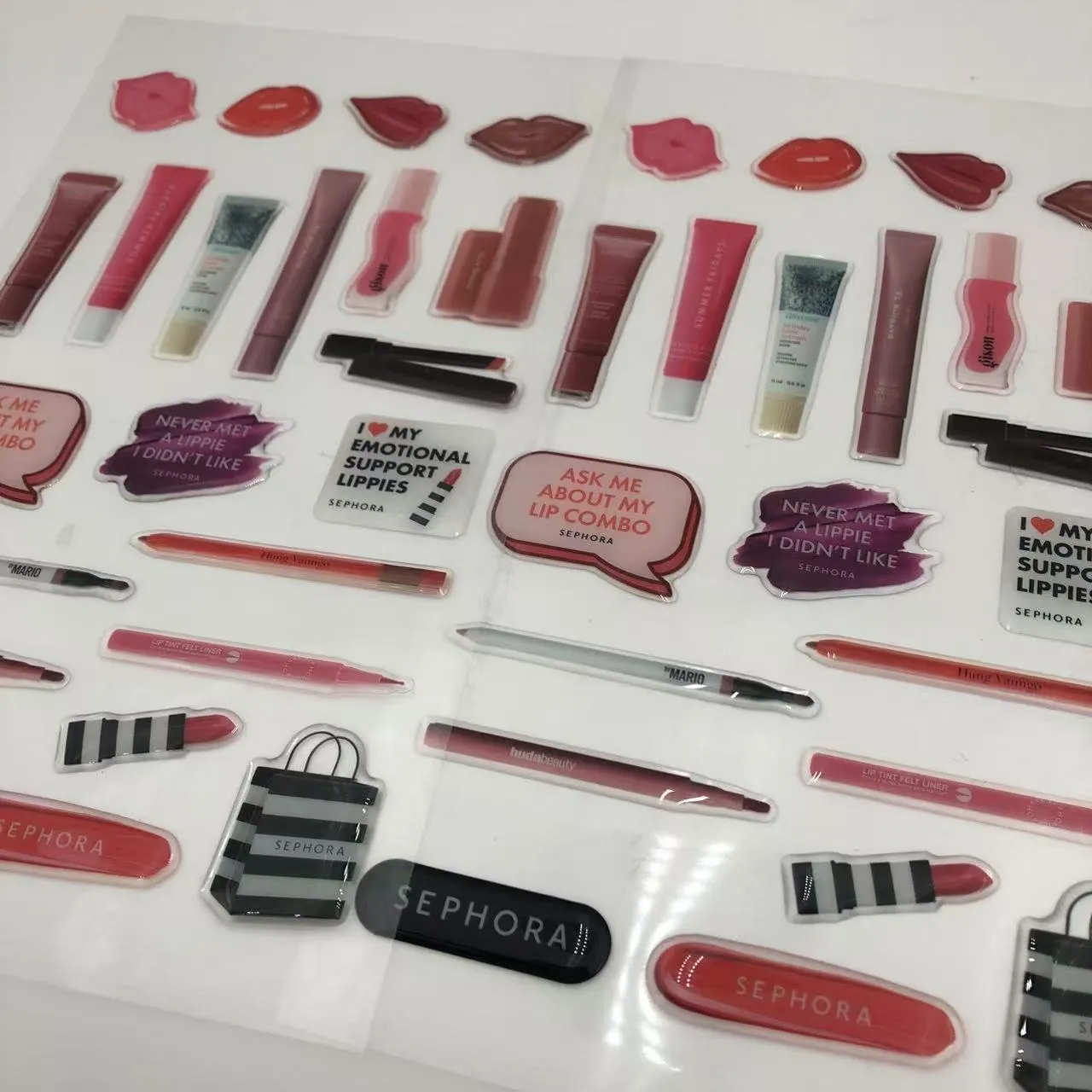 สติ๊กเกอร์เหล่านี้แตกต่างจากสติกเกอร์แบบแบนทั่วไป โดยสามารถกันน้ำ กันรอยขีดข่วน และสีซีดจางได้ ผลิตจากวัสดุที่เป็นมิตรต่อสิ่งแวดล้อมและมีกาวที่ถอดออกได้ ให้ความเหนียวยาวนานบนพื้นผิว เช่น เครื่องเขียน ของเล่น ถ้วย และผนัง และสามารถลอกออกได้โดยไม่ทิ้งสารตกค้างหรือสิ่งของที่สร้างความเสียหาย