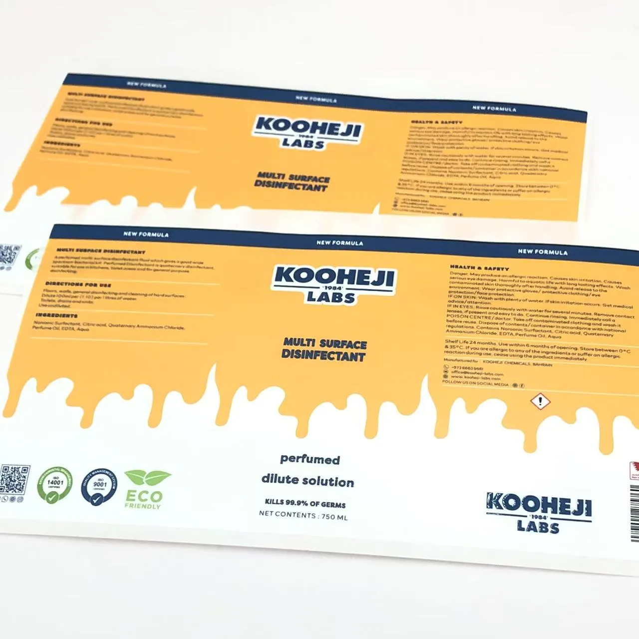 โจโจ้แพ็คมีส่วนร่วมอย่างลึกซึ้งในการปรับแต่งฉลากบรรจุภัณฑ์ขวดยาฆ่าเชื้อ เราคุ้นเคยกับข้อกำหนดวัสดุและมาตรฐานความปลอดภัยของผลิตภัณฑ์ยาฆ่าเชื้อในทางการแพทย์ ครัวเรือน เชิงพาณิชย์ และอุตสาหกรรม เพื่อให้มั่นใจว่าฉลากที่ปรับแต่งเองจะปรับให้เข้ากับสภาพแวดล้อมการใช้งานที่รุนแรงได้อย่างเต็มที่