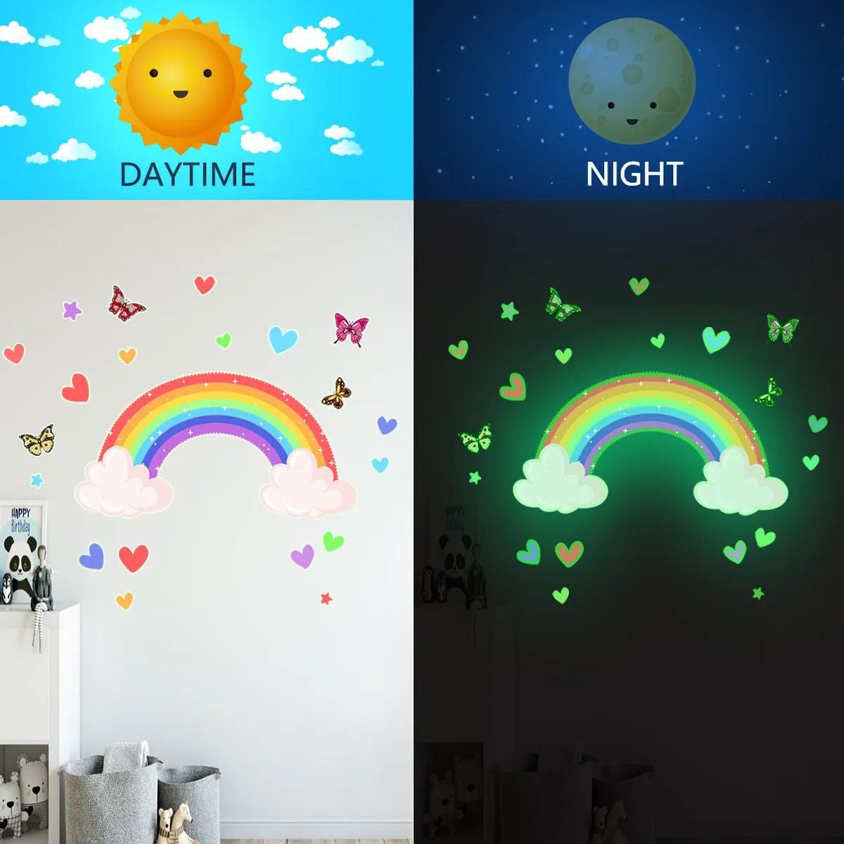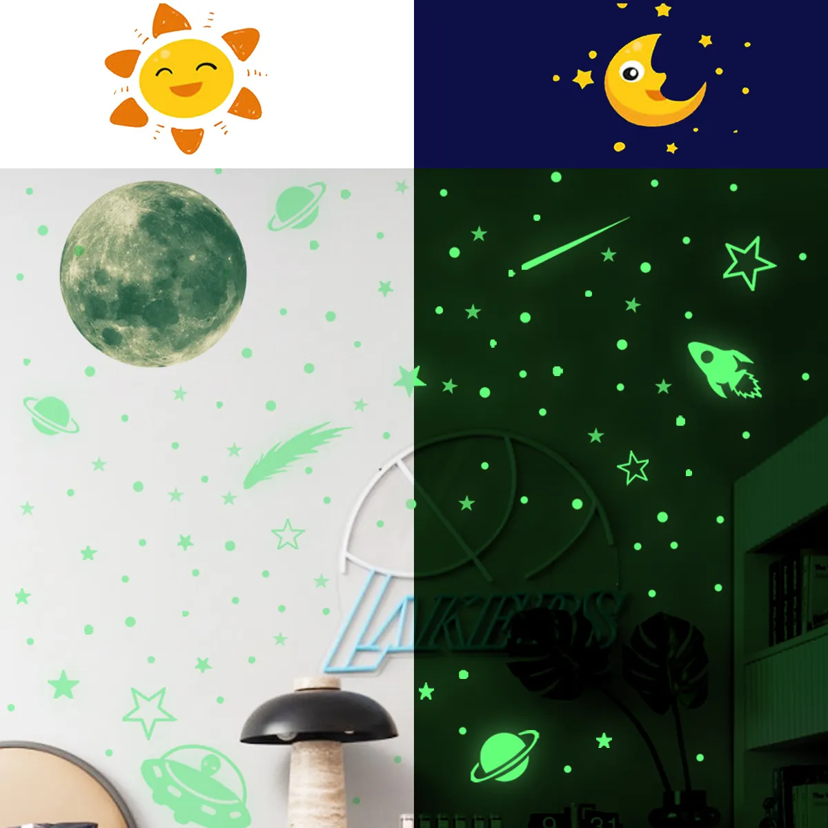 สติกเกอร์ติดผนังส่องสว่างไม่จำเป็นต้องเจาะรูและจะไม่ทำลายกำแพง เพียงแค่ใช้มันเบา ๆ และคุณสามารถเพลิดเพลินกับเอฟเฟกต์การส่องสว่างที่อ่อนนุ่มในเวลากลางคืน มันดูดซับแสงในระหว่างวันและเรืองแสงตามธรรมชาติในเวลากลางคืน การออกแบบที่ถอดปลั๊กมีความปลอดภัยและเป็นมิตรกับสิ่งแวดล้อมทำให้เหมาะสำหรับครอบครัวที่มีเด็กทารก รูปแบบมีความชัดเจนและขอบก็ใช้ได้ สามารถแก้ไขได้อย่างแน่นหนาบนเพดานหรือผนัง มันจะไม่ทิ้งกาวใด ๆ เมื่อฉีกขาดและง่ายต่อการเปลี่ยน ไม่จำเป็นต้องมีชุดค่าผสมที่ซับซ้อน เพียงไม่กี่สติกเกอร์ที่เรียบง่ายสามารถทำให้พื้นที่ดูใหม่ได้อย่างสมบูรณ์