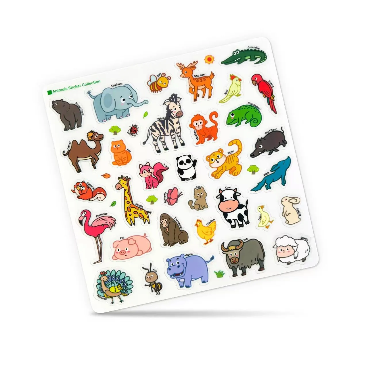 ผลิตโดยใช้เทคโนโลยีการพิมพ์อุตสาหกรรมไฮเดลเบิร์กสติกเกอร์และฉากมีสีสันที่สดใสและมีความละเอียดสูงเหนือกว่าการพิมพ์ดิจิตอลมาตรฐาน แผ่นสติกเกอร์แต่ละแผ่นมีขนาด 23.531 ซม. (ขยายเป็น 70.531 ซม.) และรวมถึง 35 ชิ้นที่มีธีม (เช่นสัตว์ยานพาหนะ) นำเสนอสถานการณ์การโต้ตอบที่หลากหลาย