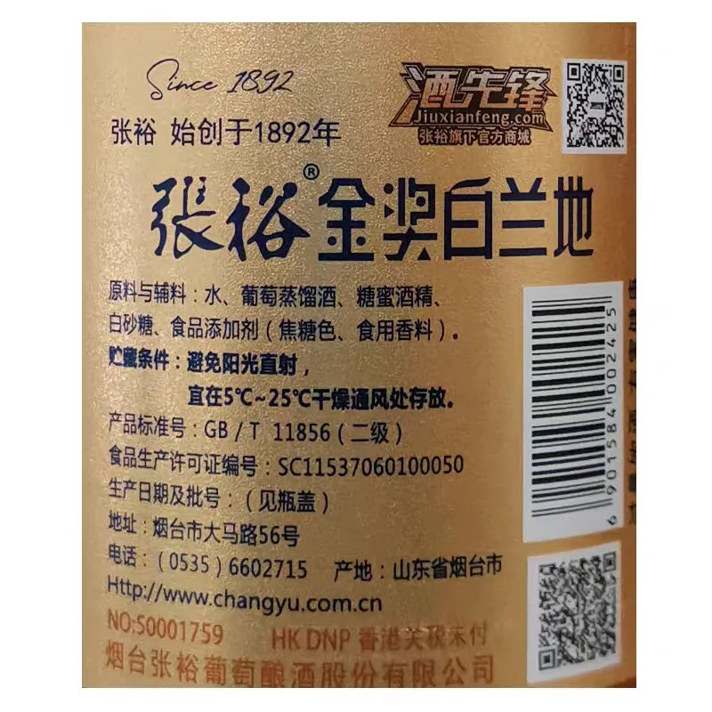 บรั่นดีนี้ฉลากไวน์ใช้ความเงาของอลูมิเนียมฟอยล์เพื่อสร้างแสงที่เปล่งประกาย ชื่อแบรนด์และชื่อผลิตภัณฑ์ซึ่งเป็นจุดสนใจจะถูกเน้น ป้ายทั้งหมดมีพื้นผิวด้านแบบเกรน และเอฟเฟกต์ด้านช่วยเพิ่มความรู้สึกหรูหราและซับซ้อนของป้าย เทคนิคเหล่านี้มีความสำคัญอย่างยิ่งสำหรับแบรนด์ไวน์ที่กำหนดเป้าหมายไปที่ตลาดระดับไฮเอนด์
