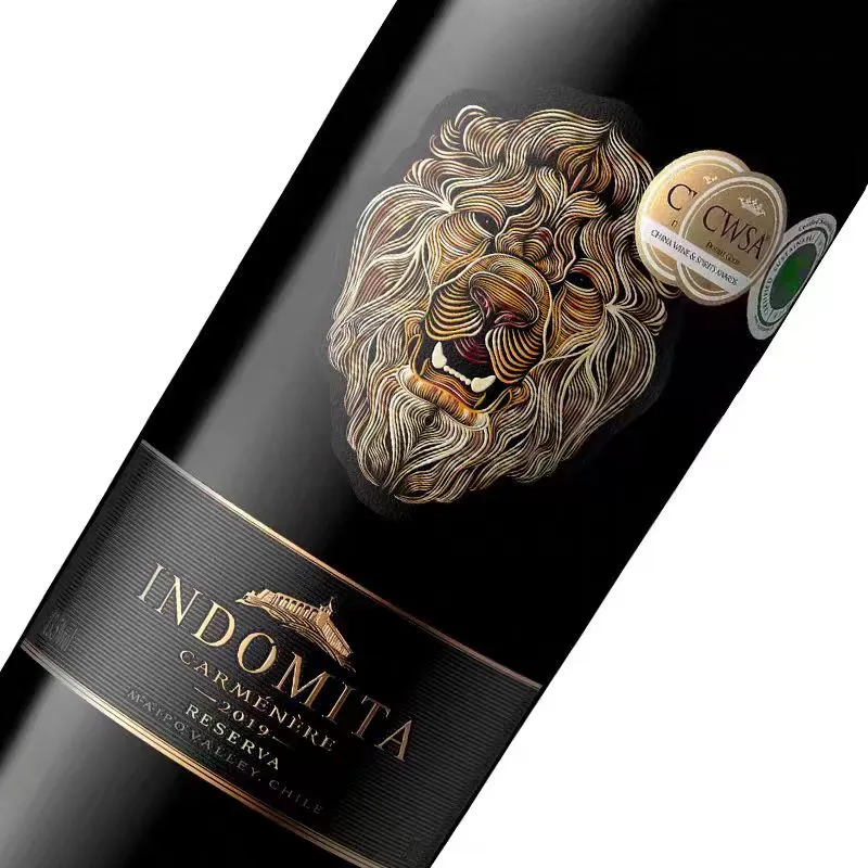 นี้ฉลากไวน์ใช้การออกแบบแบบแยกส่วน ส่วนล่างมีพื้นผิวพื้นหลังเป็นเส้นตรง ในขณะที่ข้อความ ปราสาท และขอบบนและล่างประทับด้วยฟอยล์ทองแดงทองแดงโบราณ พื้นผิวและการไล่ระดับสีของหัวสิงโตเพิ่มความแวววาวและเอฟเฟกต์ 3 มิติ ทำให้ฉลากทั้งหมดดูเปล่งประกายภายใต้แสงและดึงดูดความสนใจของผู้บริโภค