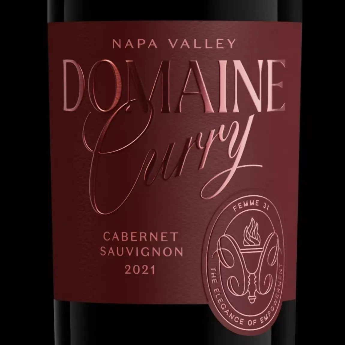 นี้ฉลากไวน์ใช้การปั๊มแบบแบนด้วยฟอยล์สีโรสโกลด์ ข้อความและลวดลายทำให้ฉลากมีสามมิติและมีการจัดชั้นอย่างดี การผสมผสานที่ลงตัวของการออกแบบและเทคนิคนี้ช่วยเพิ่มมูลค่าเพิ่มของฉลากให้ดียิ่งขึ้น