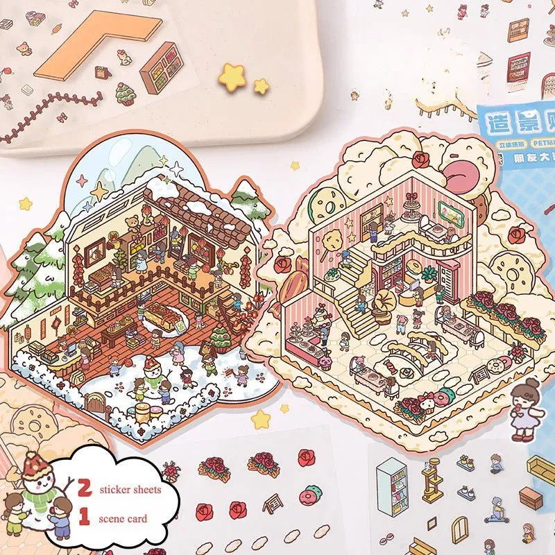 เด็ก ๆ สามารถรวมฉากต่าง ๆ ได้อย่างอิสระเช่นห้องครัวห้องนอนและสวนเพื่อสร้างกระท่อมในฝันของตัวเองเช่นเดียวกับอาคารที่มีบล็อก สติกเกอร์สามารถบรรเทาความเครียดได้อย่างรวดเร็วด้วยวิธีการโต้ตอบเช่นการวางและการซ้อน