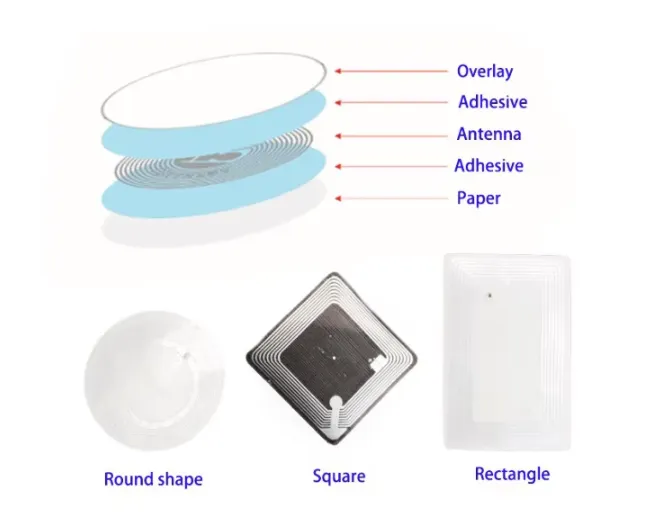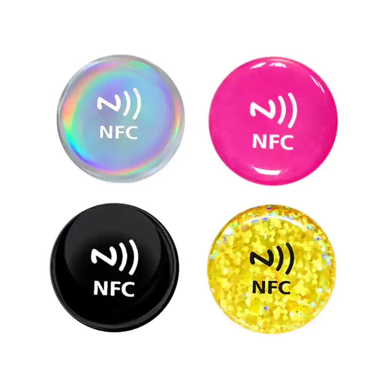 ขนาดและรูปแบบ: สติกเกอร์ NFC มีขนาดเล็ก พวกเขามักจะกลมและขนาดของเหรียญ ด้านหนึ่งมีกาวดังนั้นคุณสามารถติดสิ่งต่าง ๆ เช่นโปสเตอร์สายรัดข้อมือหรือนามบัตรได้อย่างง่ายดาย